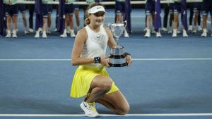 Enfrentando un desafío final, la joven lanzó un revés al ganador de la línea para borrar el primero, repeler al segundo con un tiro similar y derribar al tercero con un golpe de derecha al final, produciendo su mejor tenis cuando más lo necesitaba.