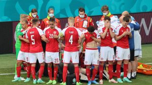 El jugador del Inter de Milán Eriksen se desplomó el árbitro al ver lo sucedido no dudó ni un segundo e inmediatamente llamó a los médicos de la selección danesa, quienes le brindaron la asistencia de emergencia durante 15 minutos; el capitán danés Simon Kjaer habló con sus compañeros para hacer un círculo alrededor de los médicos para así darle privacidad a su compañero.