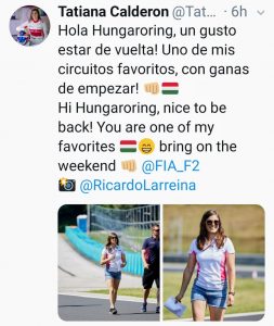 Este fin de semana en el marco del Gran Premio de Fórmula Uno de Hungría en Budapest, se presenta la Fórmula 2 como categoría telonera de esta. Allí Colombia tiene representación, la piloto bogotana Tatiana Calderón, quien participa de manera activa del campeonato con el equipo BWT- ARDEN.
