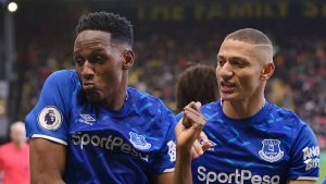 Luego de 402 días, Yerry Mina volvió a marcar gol. Mina empató en tres minutos un partido que perdía el Everton de visita 0-2 frente al Watford, el colombiano anotó a los 45′ y 45’+3′, el primero con derecha, tras un rebote, y el segundo de cabeza. El partido lo terminó dando vuelta el Everton con el gol de Walcott a los 90′. El defensor de 25 años fue elegido la figura del partido.